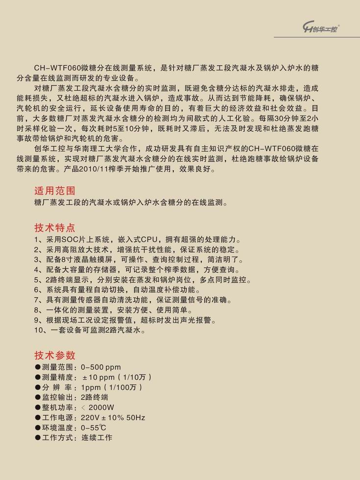 CH-WTF060微糖分在線測量系統(tǒng)
